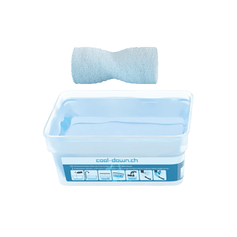 Die feuchte Baumwollbinde 2-3 Stunden wirken lassen, bis sie ausgetrocknet ist. Den Vorgang so oft wie nötig wiederholen. Das ICE FLUID reicht für etwa 40 (250ml) bzw. 15 (100ml) Anwendungen. Die Anwendung von cool down ist risikolos. Bei offenen Wunden, Ausschlag oder Ekzem darf cool down nur über einem Wundverband verwendet werden. Besonders vorsichtig sollte in der Nähe von Augen und Geschlechtsteilen gekühlt werden.